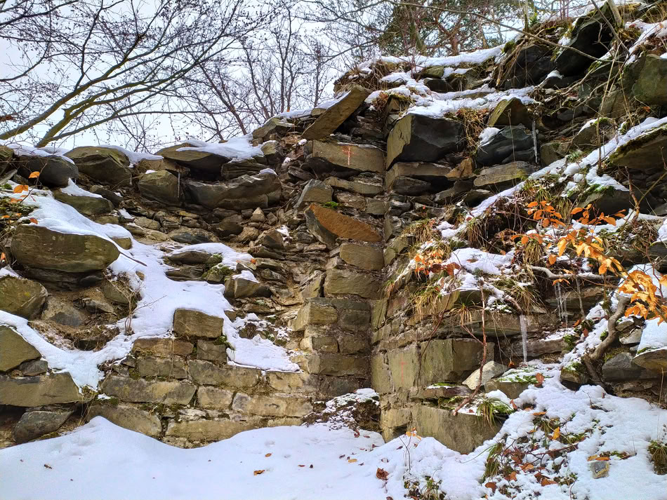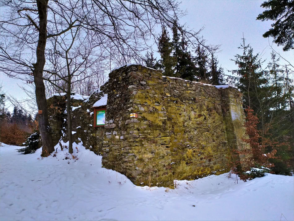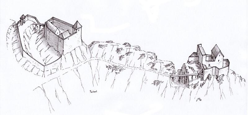 K Puchartu vede žlutá značka od osady Boňkov. Chodníček se klikatí a prudce stoupá po kamenitém hřebínku až k zadnímu hradu, kde nalezneme nejzachovalejší torzo. Od hřebene vedoucího k přednímu hradu je oddělený hlubokým a 12 metrů širokým příkopem. Chodníček žluté sestupuje pod příkop ze strany a následně stoupá pod hřebenem k přednímu hradu. Skalnatý a úzký hřeben byl pro stavitele nejspíš tvrdým oříškem, proto se nijak nesnažili oba hrady propojit. Z předního hradu se dochovaly zejména terénní úpravy. Na přístupové západní straně je mohutný příkop až 25 metrů široký. Za ním, na vyvýšeném místě, stával obytný palác s lichoběžníkovým půdorysem o rozměrech 37 x 28 metrů. Hrad nejspíš zanikl v roce 1394, kdy byl dobyt markrabětem Prokopem. Další zajímavostí je, že přímo pod hradem v údolí stojí hostinec U Tlustého Jana. Jan, jeden z bývalých hostinských, byl údajně tak tlustý, že musel sedět na speciálně upravené židli, ze které se zvedal pomoci kladkostroje.