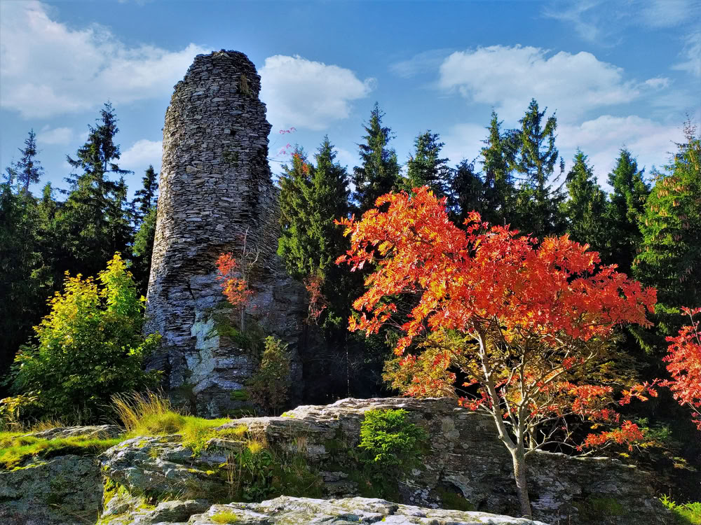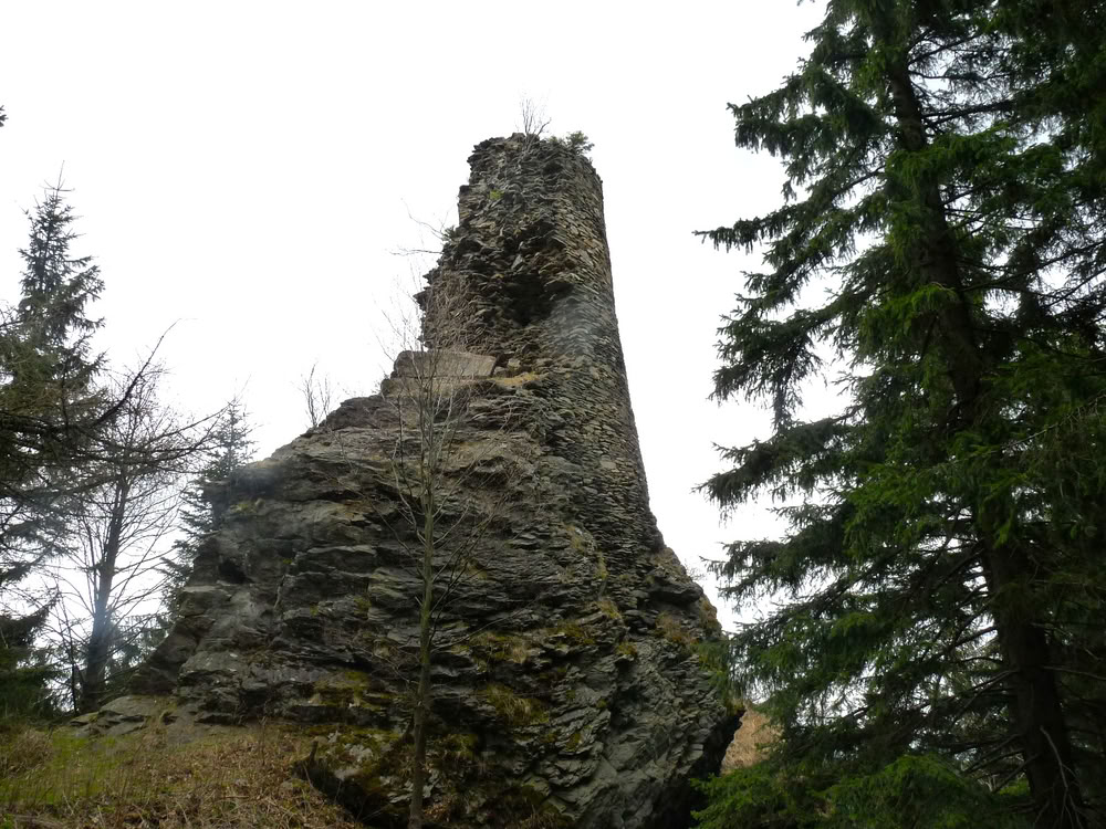 Jak bylo zmíněno výše, nečekejte rozlehlou zříceninu hradu. Jedná se o romantické a klidné místo zasazené uprostřed hor s torzem hradní věže. Před pár léty se dalo ještě napsat uprostřed divočiny, ale lesy v okolí vzaly za své a velká část kopce je nyní odlesněná. Naštěstí si prozatím vrchol zachoval svou původní divokost a krásu. Odměnou za výstup je výhled ze skály za věží, na kterou se dá vylézt po dřevěném žebříku. Výhled se otevírá na údolí a směrem na Rejvíz.