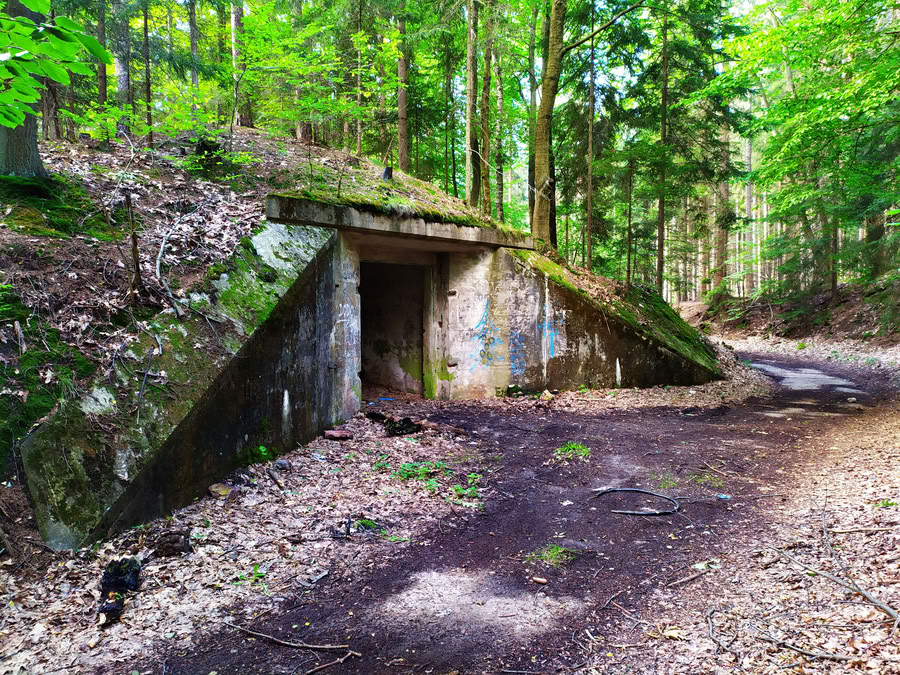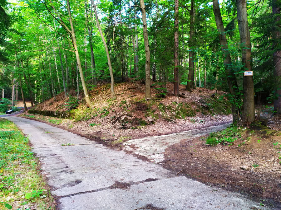 Byla zde tedy snaha maskovat veškeré pozemní stavby Riese tak, aby splynuly s okolní přírodou (platí to i pro Mucholapku?). Pod Wlodyku pak směřuje černá značka s cyklotrasou. Trasy vedou po betonové silnici budované vězni, která vypadá, jako by jí dokončili nedávno. Podél cesty narazíme na několik dalších železobetonových staveb. Cesta je zakončená třemi muničními sklady.