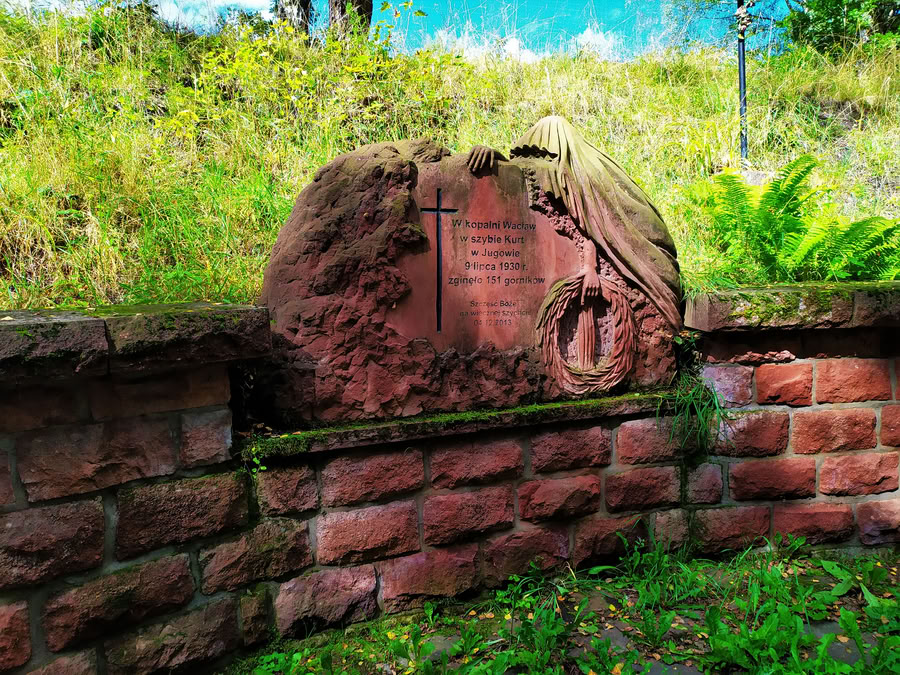 Památník věnovaný neštěstí v roce 1930, při kterém zahynulo v dole Waclaw 151 horníků. Památník je po levé straně cesty, když se vyjíždí z Ludwikowa na Jugów.