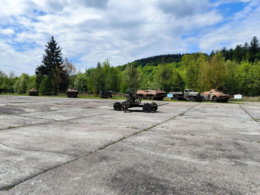V nejvyšším bodě betonové silnice, ze které vycházejí odbočky ke skladištím munice.