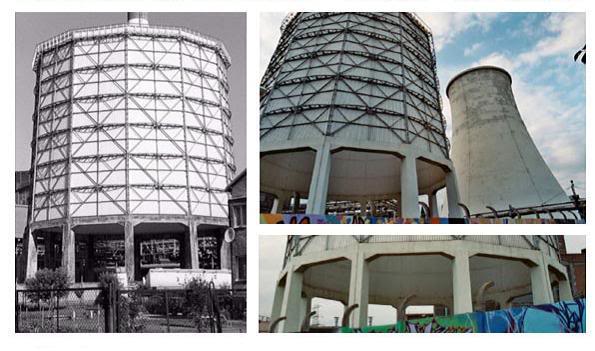 Nalezené podobné železobetonové základy chladících věží v Německu. Na tomto základu byly postavené dřevěně nebo ocelové konstrukce. V pravém horním obrázku je pak krásně vidět moderní chladící věž, která je již celá ze železobetonu. Zdroj obrázku: matrixdisclosure.com/