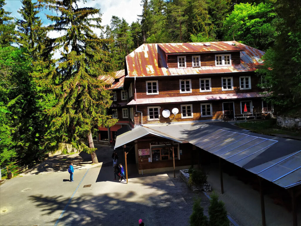 Sestup z vrcholu zpět do údolí je po žluté do sedla Javorie a z něj pak po červené. U rozcestí pod Krčahovom můžete učinit odbočku (cca 15 -20 minut) k partyzánskému táboru. Výlet měří na délku cca 16 kilometrů s převýšením 1100 metrů – nezdá se to, ale údolí u jeskyně má výšku okolo 840 metrů.