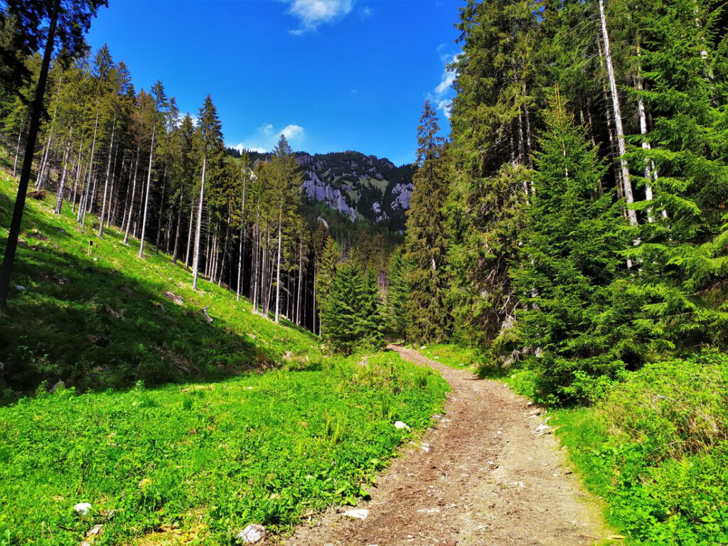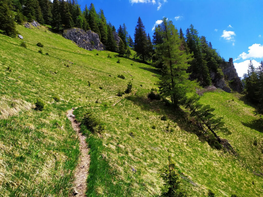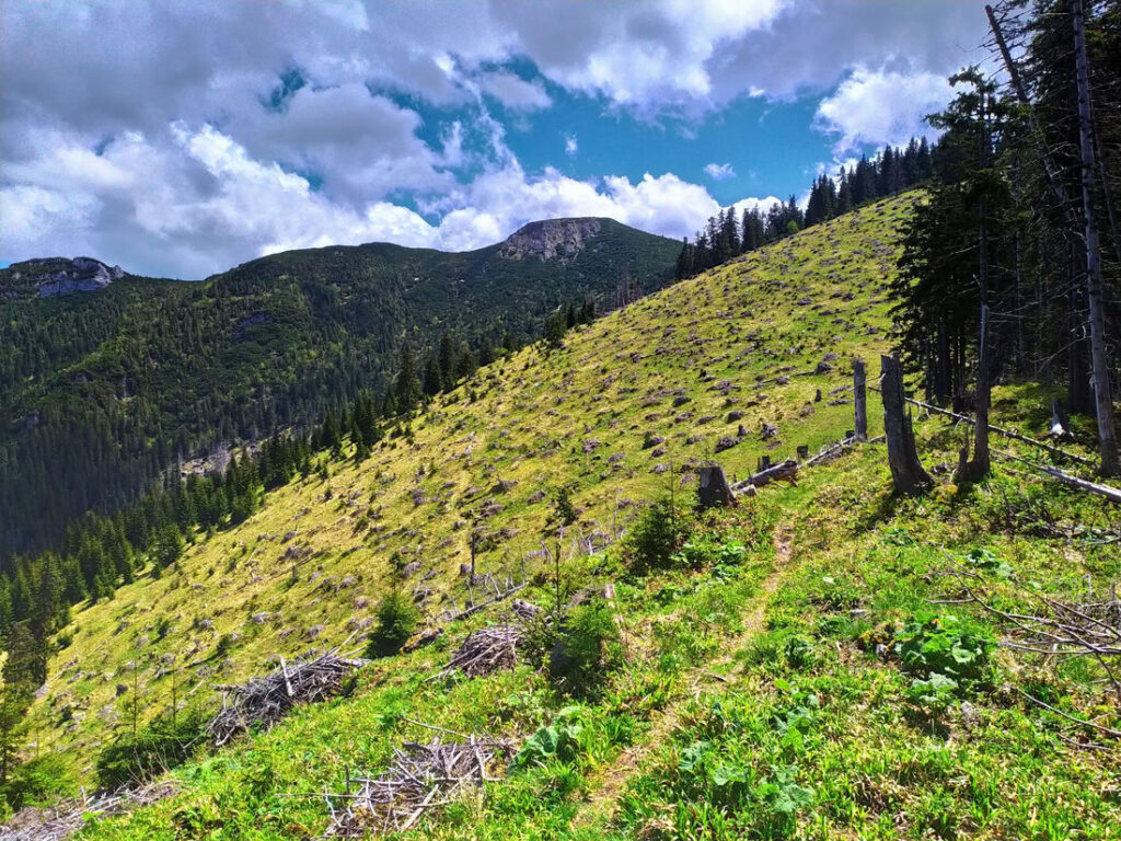 Pěkný okruh jde uskutečnit z Demänovské doliny od Demänovské jeskyně svobody, nebo lépe z Lúček, kde jde pohodlně zaparkovat (velké parkoviště P4 za závorami bylo zdarma – výjezdová závora byla otevřená). Z Lúček vede zelená značka k Demänovské jeskyni svobody. Chodníček prochází pěkně v úbočí přes mostky a kolem vápencových skalek. U jeskyně se pak napojuje na modrou značku vedoucí až na vrchol Krakove hole. Prvně modrá stoupá v úzkých serpentinách a ve výšce okolo 1300 metrů vychází z lesa na travnaté pasáže pod vrcholy Stav (1500 m) a Pusté (1501 m) – z celého výstupu se jedná o nejhezčí úsek. Za sedlem Machnaté nad hranicí lesa chodník sevře nepropustná kosodřevina, která se otevře výhledům až na malém vrcholovém plácku na Krakove holi.