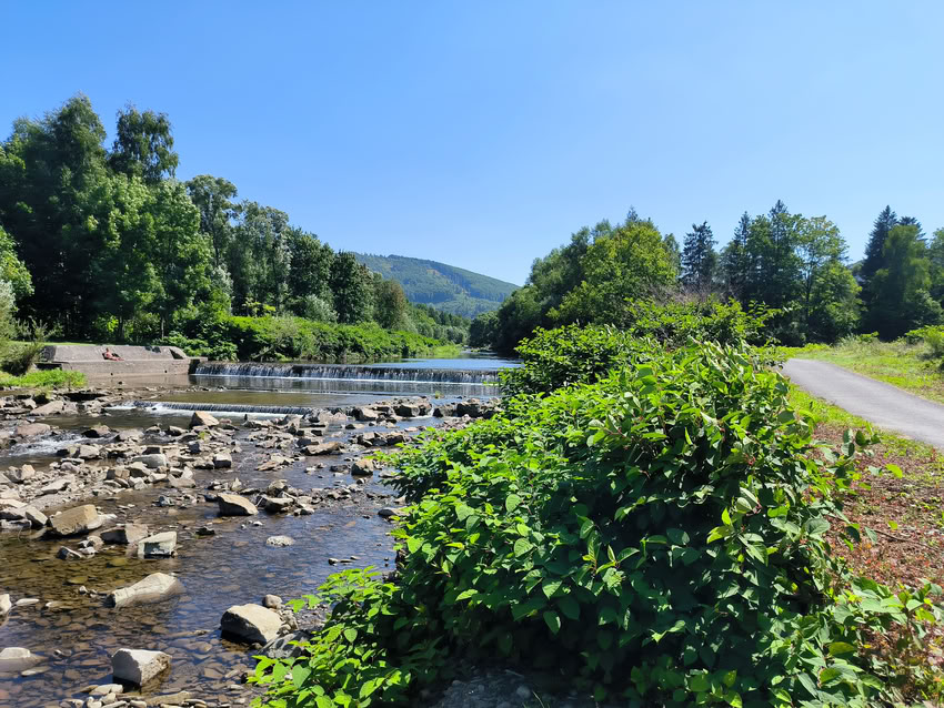 Cestu k prameni jsem odstartoval v Českém Tešíně. Vymyslel jsem si totiž, že nepojedu k prameni Olše z Jablunkova, ale vezmu to údolím řeky Visly a přes sedlo Kubalonka se už nějak k Olši dostanu. K řece Visle jsem dorazil relativně rychle a cesta proti proudu ubíhala po asfaltové cyklostezce jako po másle. Stoupat jsem začal až za městečkem Visla k vodní nádrži a posléze kolem zámku prezidenta Polska do sedla Kubalonka. Do tohoto momentu bylo vše podle plánu, představ a hlavně po asfaltu.