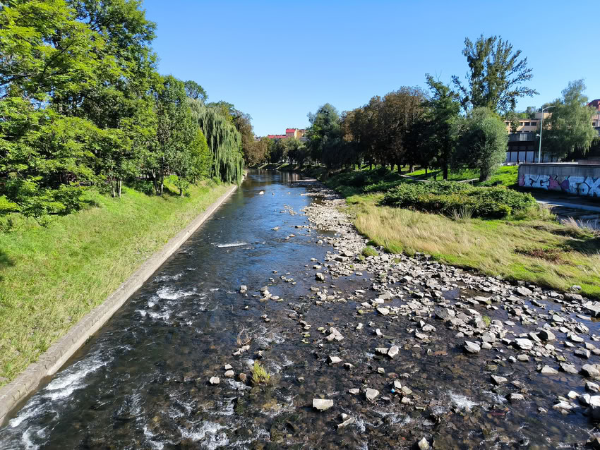 Ráno mě čekal sjezd do Bukovce, za kterým jsem zamával horám a lesům a vydal se mezi domy. A ševelení větru v lesích jsem zase vyměnil za hukot ze silnic. I to je cesta podél Olše. Jablunkov, Hrádek, Bystřice, ocelové město Třinec a rozdělený Těšín jsou téměř jedno souvislé město. V Těšíně stojí za to si projet náměstí na české straně a poté si prohlédnou polskou stranu se zámkem a Piastovskou věží. Za Těšínem jsem se na chvíli odchýlil od Olše cestou přes Chotěbuz. Jednak jsme si s řekou potřebovali na chvíli od sebe odpočinout, jednak jsem se chtěl vyhnout hlavní cestě. V Chotěbuzi jsem si dal přestávku a navštívil slovanské hradiště.