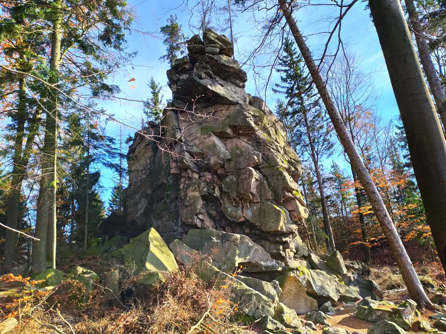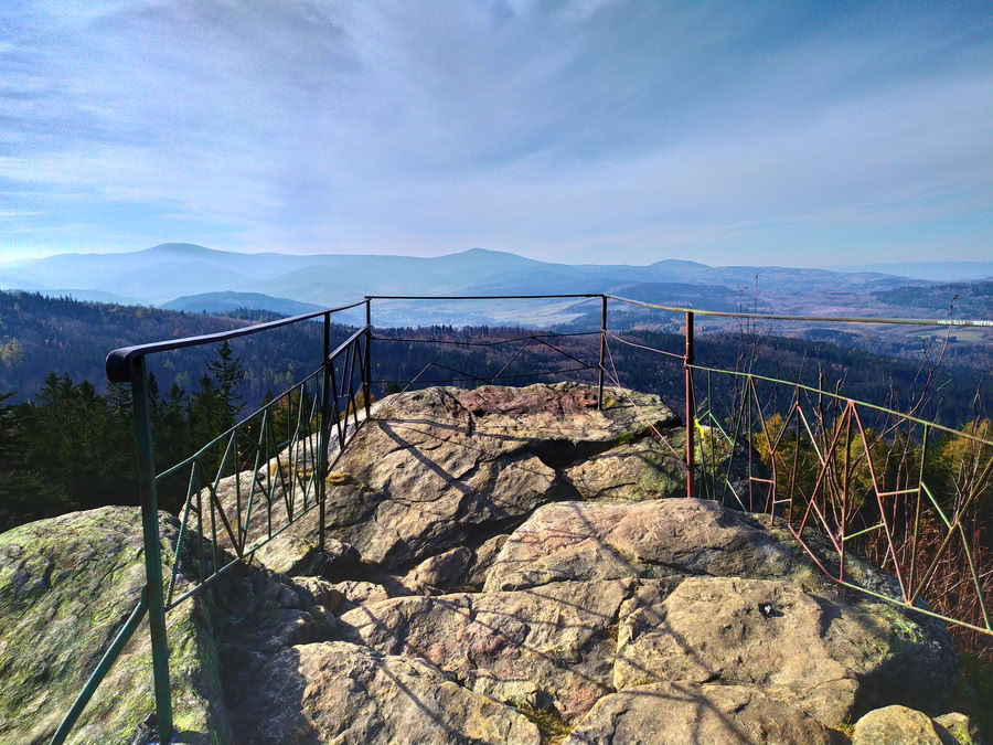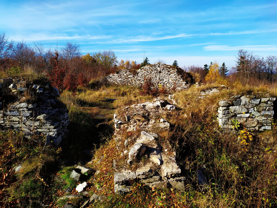 Po návratu zpět do Kobyliczneho sedla následuje další výšlap na kopec Karpiak (782 m), který ukrývá zřícenu hradu Karpenstein – nyní Karpień. Nic velkého opět nečekejte, zříceninu postupně rozebrali v minulých stoletích obyvatelé okolních vsí. Hrad byl založený pravděpodobně v 1. polovině 14. století. Jeho úkolem bylo střežit tuto část Slezska a důležitou tzv. Solnou stezku vedoucí nedaleko přes hory z Kladska do Javorníku.