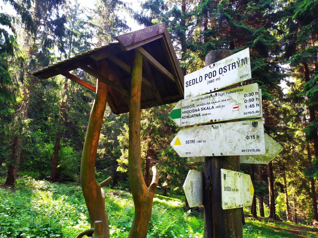 Rozcestí v sedle pod Ostrým.
