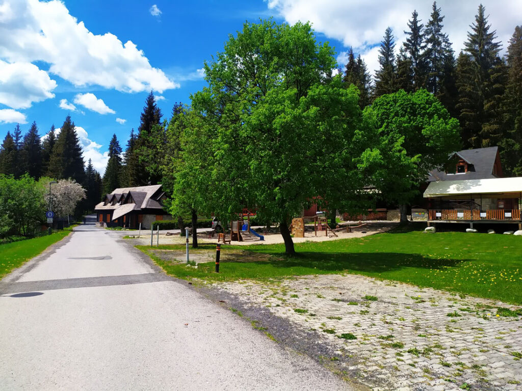 Okruh jsem trochu prodloužil a vyrazil z parkoviště vedle restaurace Červený kút. Do obce Hybe je pak třeba přetrpět nějaké 3 kilometry po hlavní cestě. Na tento úsek ale zapomenete v momentě, kdy se ocitnete na polních cestách za obcí. Cesta se vlní přes louky a občas se jede i po pěkném asfaltu. Má teorie zní, že zde museli položit nový asfalt, aby se lidé nepřizabili na nějakém výmolu – v těchto místech jsem koukal jen na panoramata Tater a ne na cestu. Před osadou Podbanské je třeba trošku máknout a z údolí Hybnice překonat přibližně 100 výškových metrů. V cíli se však můžete občerstvit v jedné z mnoha restaurací. Návrat zpět směrem na Liptovskou Kokavu je velmi pohodový – pořád je to mírně z kopce a z velké části po asfaltu. A o výhledy také není nouze. K Červenému kútu jsem dojel přes Liptovský Hrádok – Donovalovo, za kterým je třeba kousek šlápnout do kopce ke kapličce. Mé prodloužení má na délku necelých 40 kilometrů s převýšením cca 480 metrů.