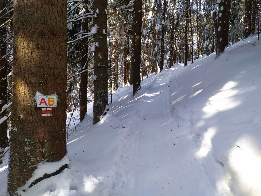 Pro svůj rekreační výstup jsem si vybral variantu B, která je ve spodní části vedená společně s variantou A přibližně 800 metrů. Varianta A je o něco kratší a vede přímo na Zvolen. B se odpojuje do leva a příjemně traverzuje ve svazích až do sedla mezi Zvolenem a Motyčianskou hoľou (1292 m). Z něj se již stoupá po hřebeni na Zvolen a terén se pozvolna začne otevírat výhledům. Za dobré viditelnosti je pak samotný vrchol třešničkou na dortu. Pásy jsem si na vrcholu ještě nechal a na nich sjel do sedla pod Novou hoľu, odkud je třeba vyšlapat ještě několik desítek metrů k horní stanici lanovky.