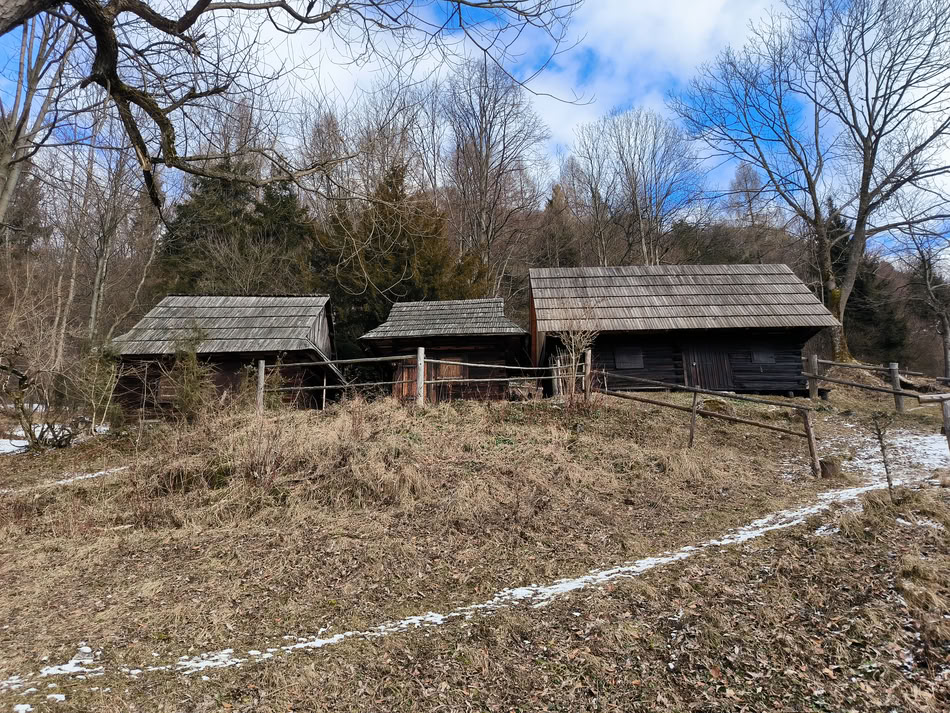 Ze Zadného Šípu začne žlutá značka prudce klesat a nenechá vás odpočinout až k osadě Podšíp. Tady mezi dřevěnicemi liptovských horalů se najednou ocitnete minimálně o století nazpět. Dnes se jeví horská osada s výhledy na Malou Fatru jako idylické místo. Nevím ovšem, jestli bychom nebyli hnáni klacky původními obyvateli za vyřčení slova idylka. Ti totiž trávili dlouhé temné zimy v dřevěnicích mnohdy ve společnosti dobytka. Každopádně má Podšíp své klouzlo a takových míst je dnes už málo.