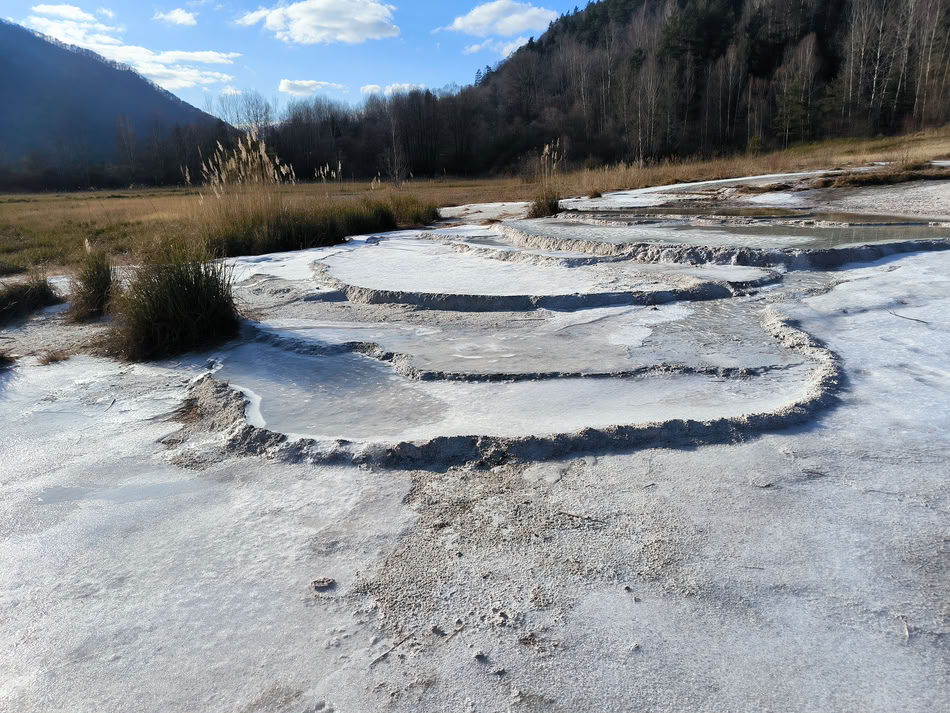 Z osady klesá zelená značka zpět do Stankovan. Dole se u kolejí napojuje zelená značka na lesní cestu. Výlet si jde ještě zpestřit o termální prameny Močiar, když se po této cestě vydáte na opačnou stranu než směřuje značka. Přibližně po kilometru se nachází louka, ze které vyvěrá několik horkých pramenů. Jedná se o sírnato - uhličité minerální prameny s léčebnými účinky vhodné pro léčbu kožních onemocnění a dále mají také blahodárné účinky na pohybové a trávící ústrojí. Jeden z pramenů byl vyhlouben a rozšířen a lze se v něm koupat. Já jsem neměl odvahu vlézt do vody, ale čtyřnohý plavec Jerry doporučuje!