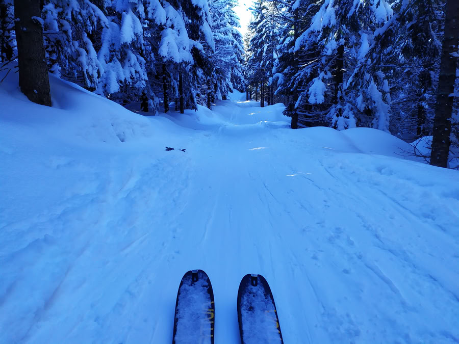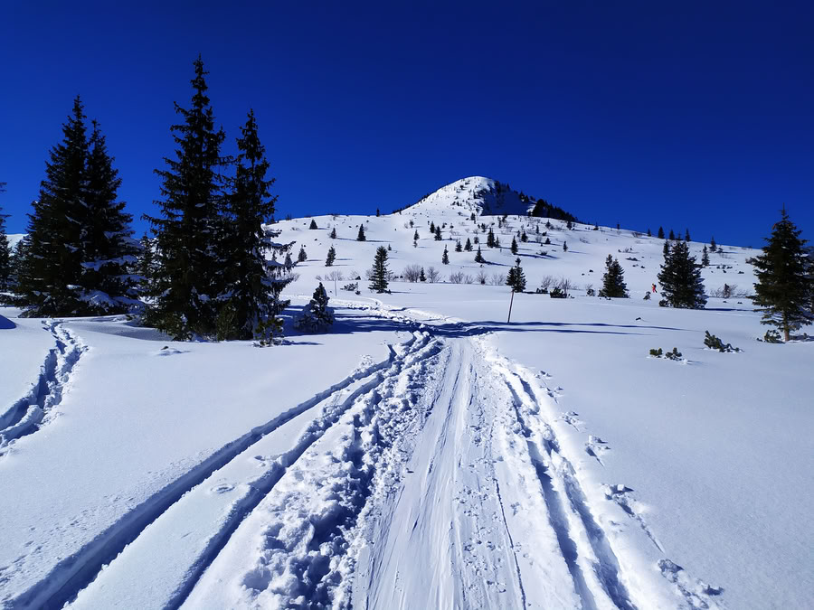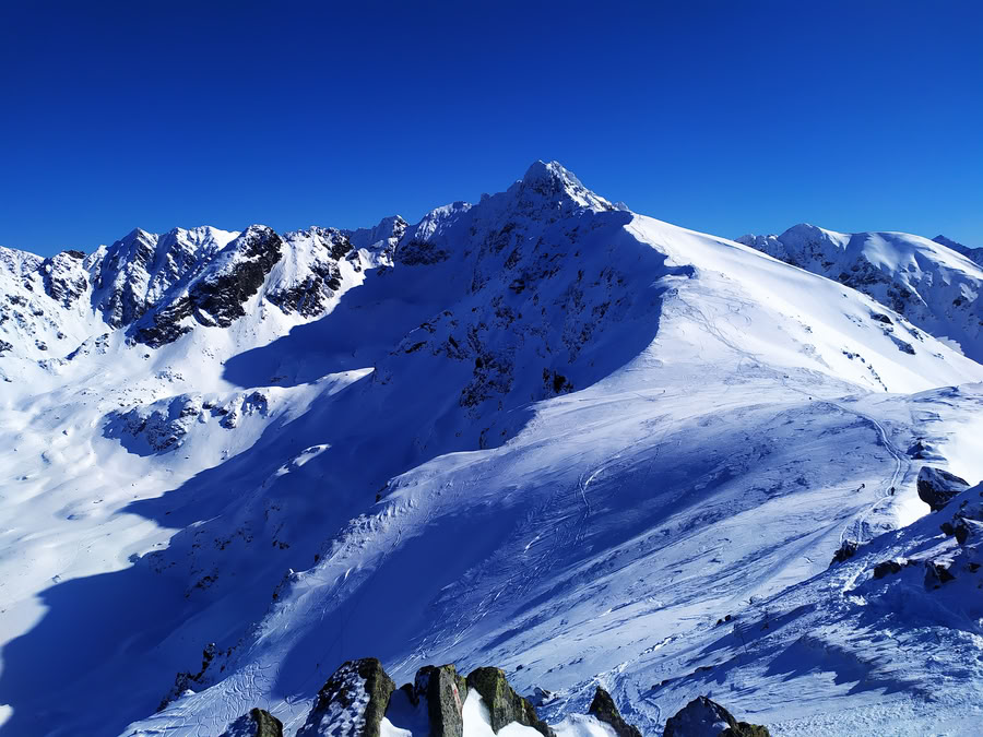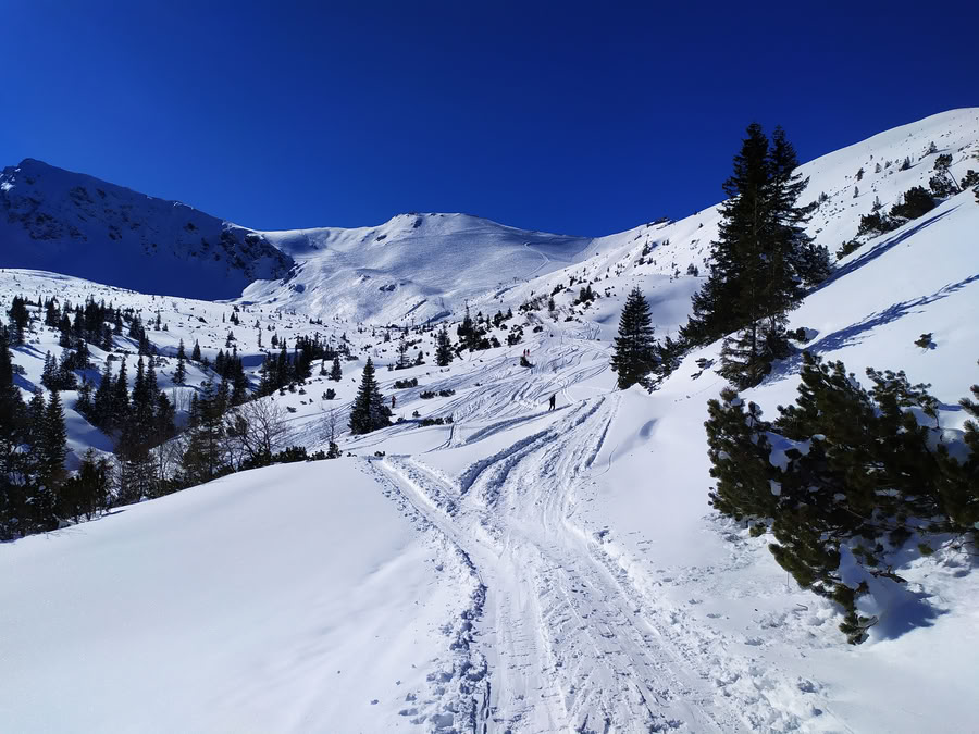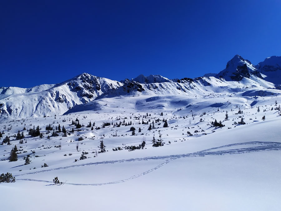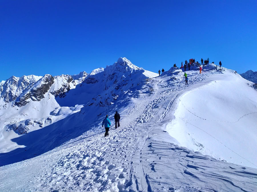 U rozcestí u dřevěných chalup se stále držíme směru Hala Gąsienicowa. Po rovinatějším úseku se spodní stanice sedačkové lanovky obchází zleva a poté je další směr cesty jasný – po urolbované dráze vedle sjezdovky, kudy v létě vede žlutá turistická značka. Některé úseky jsou u tohoto výstupu dost prudké a někdo raději sundává lyže. V sedle pod Kasprowym Wierchem doporučuji vydat se po hřebeni na nedaleký Beskyd – jednak na něm překonáte hranici dvou tisíc metrů (přesněji 2012 m), ale také se vám otevřou krásné výhledy zejména na Svinici na Kriváň. Sjezd z Kasproweho je pak za odměnu a při bohatější sněhové pokrývce lze na lyžích sjet z Kuźnic až téměř do Zakopaného (sjíždí se zprava hlavní cesty).