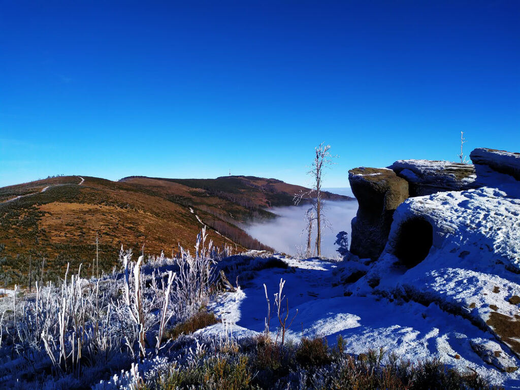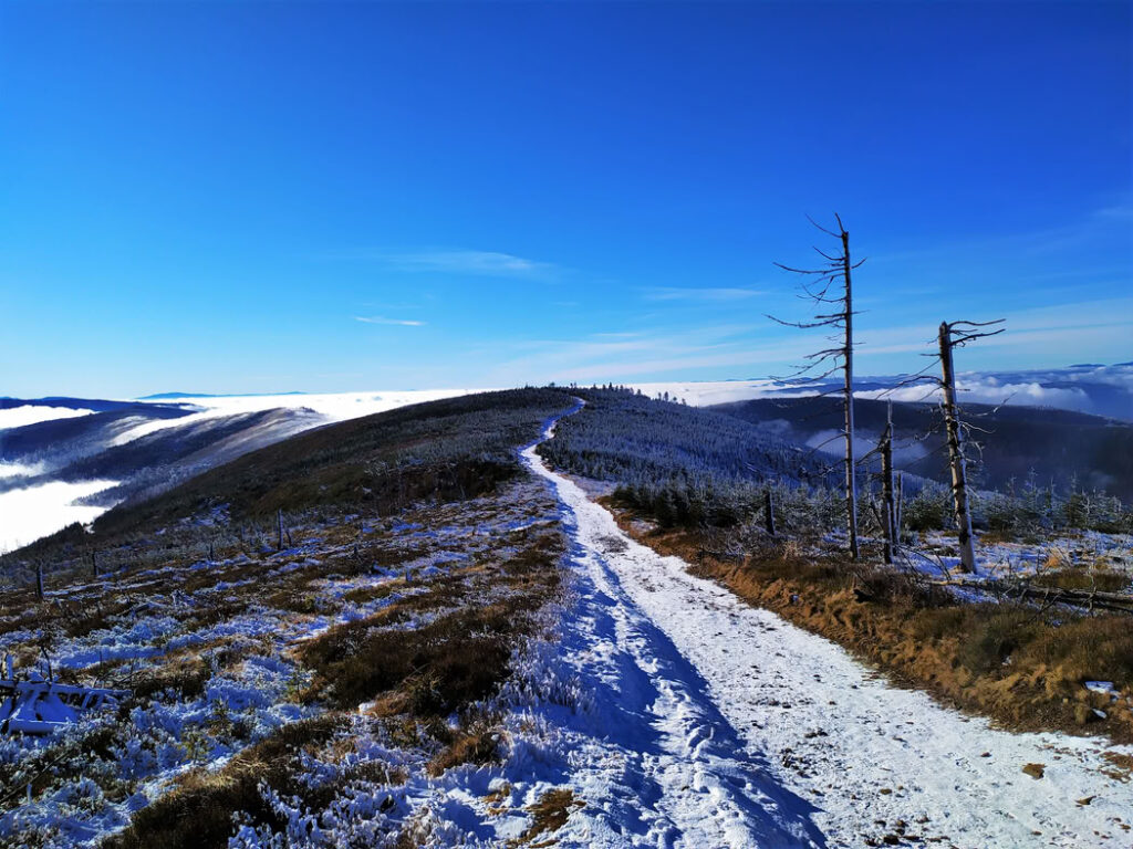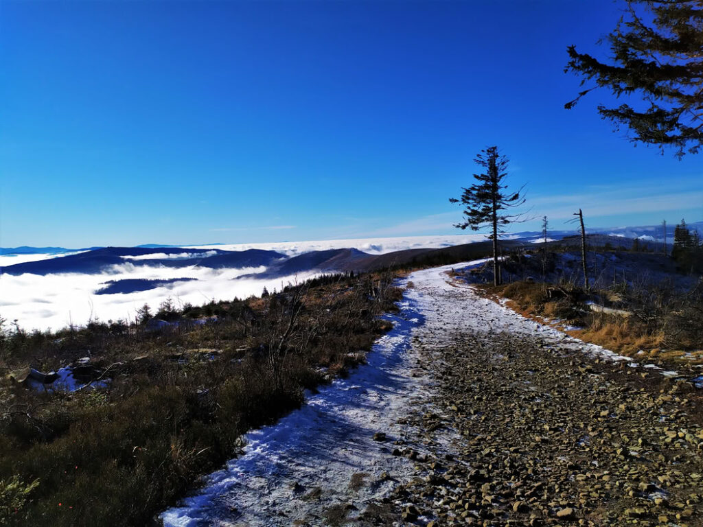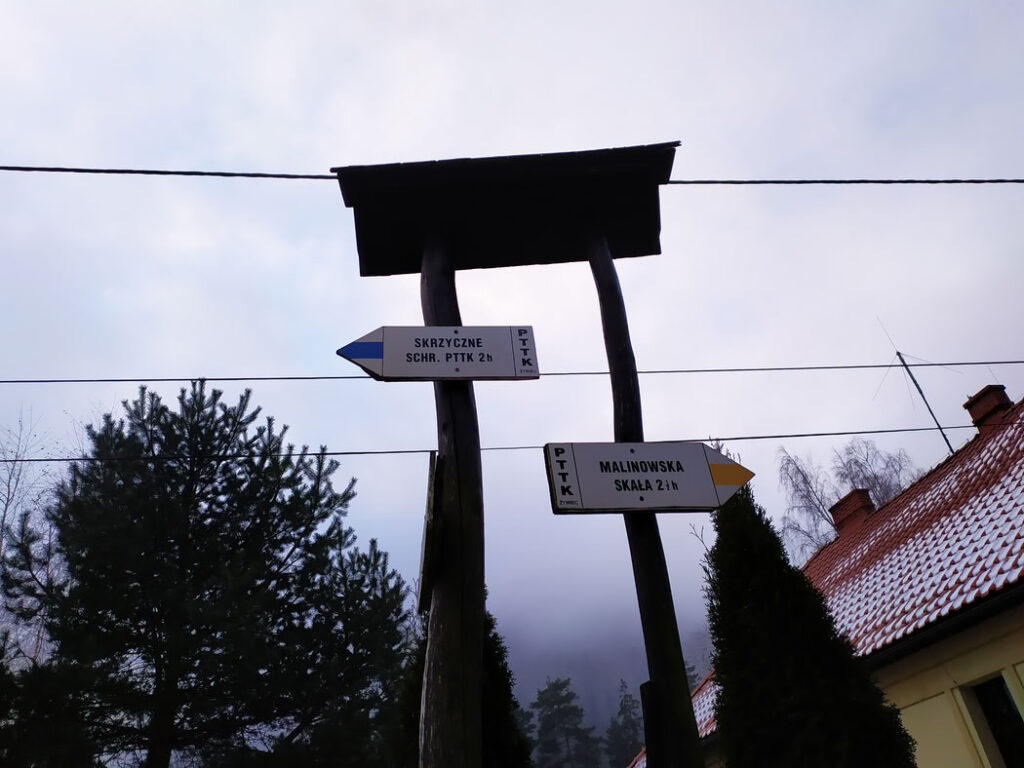 Pokud pohlédneme do mapy, tak nám hned jako první padne do oka okruh, který začíná v obci Ostre v údolí potoka Leśnianka. Pro místní turisty to bude určitě klasika. Před zákazem vjezdu do údolí jsou dvě prostorná a bezplatná parkoviště. O víkendech a svátcích (zkušenost z roku 2023) už tak prostorná nejsou, proto raději vyrazte brzy. Buď se vydáte po modré hned na vrchol a veškeré stoupání si odbydete na začátku, nebo můžete zvolit mírnější průběh s konstantním stoupáním po žluté a zelené značce přes Malinowskou Skalu. Okruh má 16 kilometrů s převýšením cca 850 metrů.