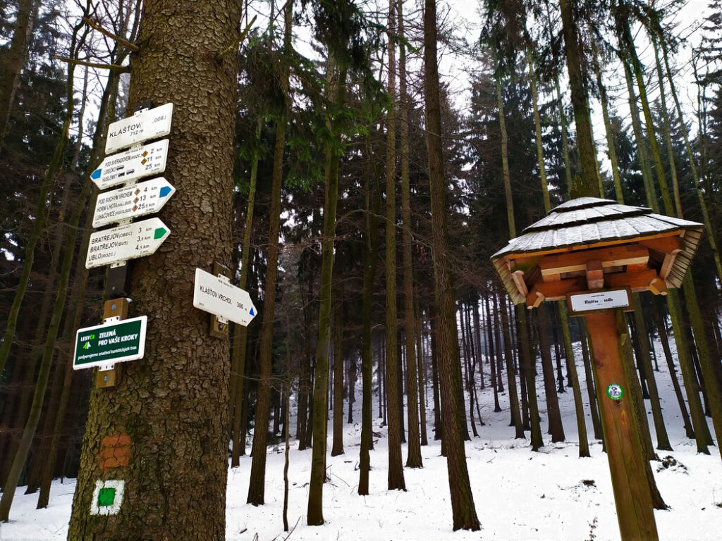 Pěkný okruh se nabízí z jihu od obcí Vysoké Pole a Drnovice. Pokud prvně vyrazíme z Dlouhého Pole po žluté značce, tak nás hned na začátku mineme Envicentrum Pro krajinu zaměřené na výuku a ukázku starých řemesel. Kousek nad ním začíná asi kilometr dlouhá křížová cesta k poutnímu místu zvanému Bojatín, kde najdeme kapli Panny Marie Vysocké a o něco dál Vodní kapličku se zděným pramenem údajně léčivé vody. Žlutá pak vstupuje do lesa a pod Suchým vrchem míjí další kapličku sv. Františka. O kousek dál se žlutá značka v sedle pod Suchým vrchem napojuje na modrou. Po čtyřech kilometrech dojdeme pod Klášťov, na který vede 300 metrů dlouhá odbočka. Poté po modré sestoupíme do sedla pod Sverádovem, kde o kousek níž pramení řeka Vlára. Ze sedla sestupuje zelená značka do Ploštiny, kde se můžeme dočíst o hrůzném vyvraždění osady Němci kvůli místní partyzánské aktivitě. Značka pokračuje do Drnovic kolem velkého památníku (nyní v rekonstrukci). V Drnovicích se zelená napojuje na žlutou, která jde zpět na začátek do Vysokého Pole.