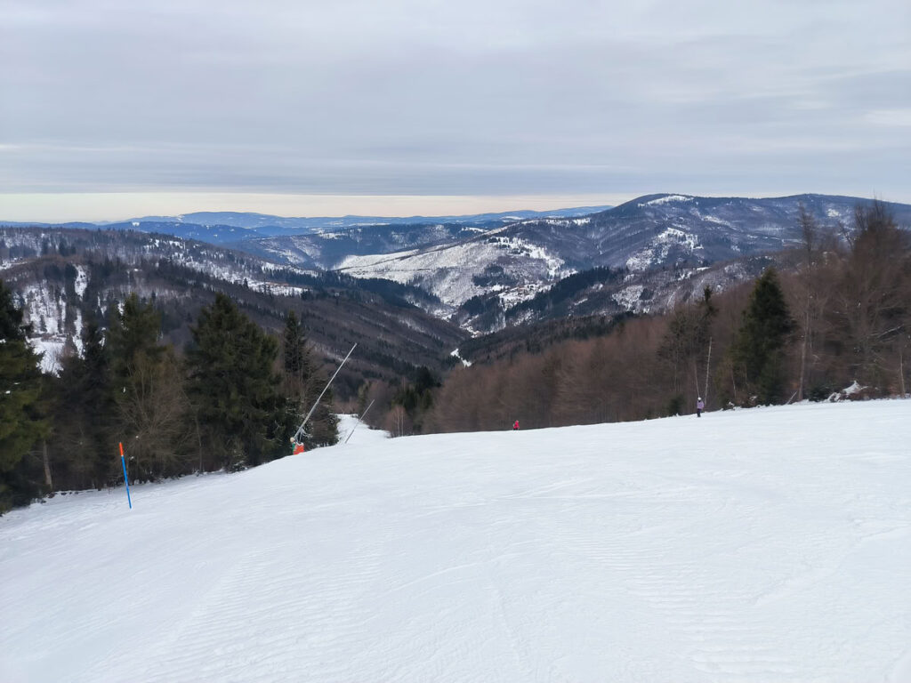 Za Veľkým Príslopem jsem zahájil poslední bitvu dne - převýšení necelých 300 metrů po táhlém hřebeni na vrchol Velké Ráči. Na vrcholu jsem se vykašlal na zmrzlou svačinu z batohu a nechal jsem se rozmazlit v chatě. A když už jsem zavítal na polskou chatu, tak jsem si dal i jejich tradiční polévku žurek a grzane piwo neboli svařené pivo. Poté mě čekala ještě jedna odměna a tím byl sjezd. Z vrcholu je to ke sjezdovkám ještě 1,5 kilometru po hřebeni úzkým koridorem. Tady se hodí umět obratně zatáčet, jinak to budete sjíždět bokem a pluhem se smrtí v očích jako skupina lyžařů, které jsem míjel. Pod sjezdovkou jsem nahodil lyže na batoh a musel jsem po cestě dojít zpět k autu na výchozí parkoviště cca 1 kilometr. Pokud je sníh, tak za mě opravdu krásná trasa na lyžích v rámci Beskyd.
