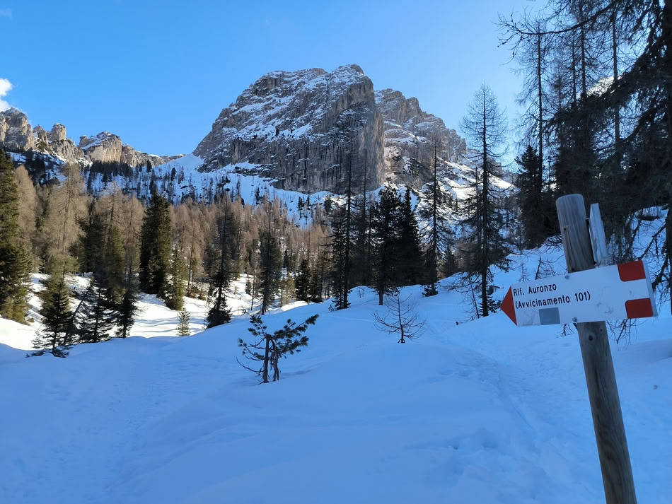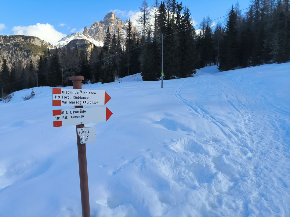 Zaparkovat lze buď na parkovišti pod sjezdovkou nebo se dá vyjet o kousek výš nad sjezdovku na parkoviště u chaty a jezera Antorno. Na lyžích můžete vystoupat k chatě Auronzo buď po asfaltce (což je nuda) nebo se vydat od rozcestí Misurina Casello po letní turistické značce. Ta se napojuje na asfaltku až téměř pod chatou. Jestli si to časově lépe rozplánujete a máte dobrou kondici, tak určitě bude stát za to obejít Tre Cime dokola. Zpět se sjíždí na lyžích po asfaltce od chaty Auronzo.