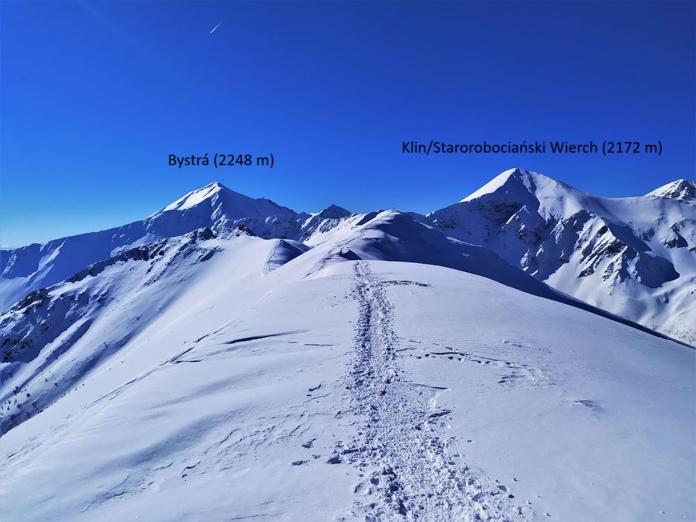 Nevelký vrchol Ornaku (1854 m) není nijak označen cedulí. Na vrcholu ale nestojíte nejvýš na tomto hřebeni, protože samotný Ornak o pár metrů převyšuje skalnatý Zadni Ornak (1867 m) o kousek dál. Za ním pak následuje sedlo Siwa. Tady můžete v případě problémů sestoupit po černé značce do Doliny Chocholowske. Pokud půjde vše dobře, tak budete mít před sebou další prudší výšvih na Sivou vežu. Z jejího vrcholu se vám naskytne pohled na poslední velkou bitvu – výstup 230 výškových metrů na vrchol pyramidy Klin. Odměnou za několikahodinovou dřinu během výstupu na Klin vám za dobrého počasí bude panoramatický výhled na Západní Tatry, Vysoké Tatry a Nízké Tatry. Výhledu dominuje zejména protější Bystrá.
