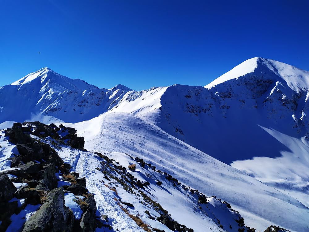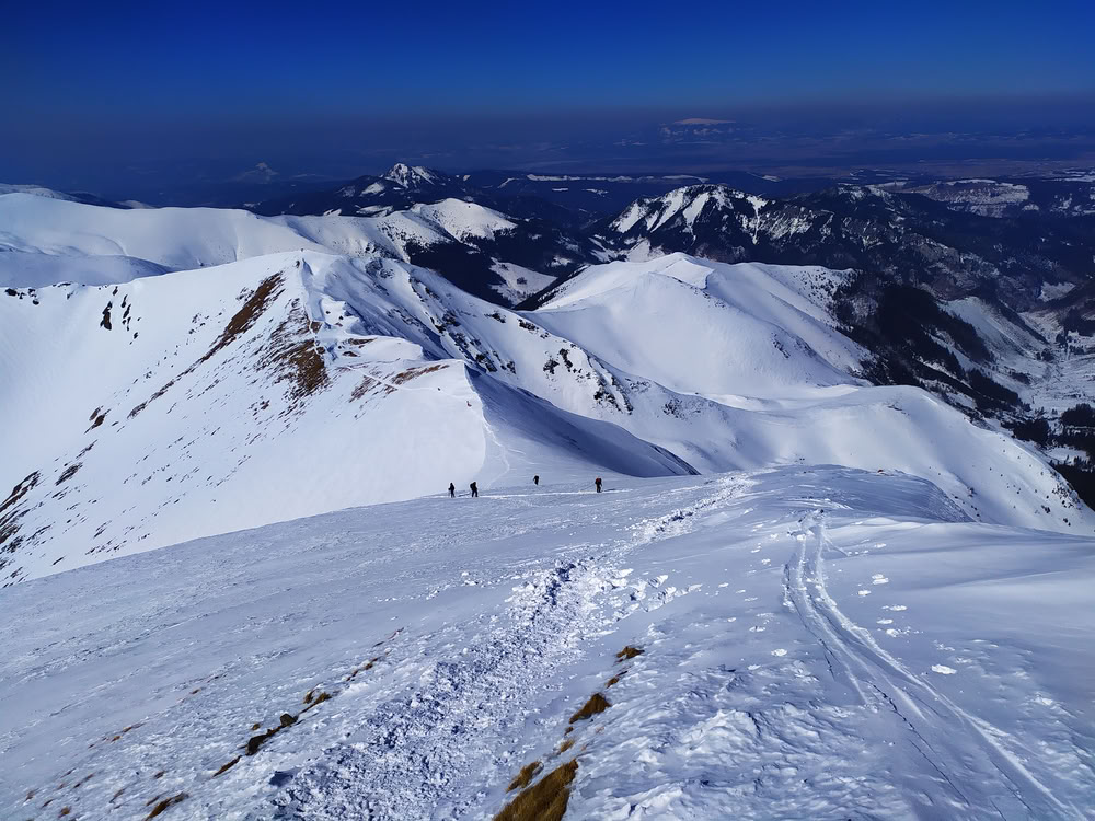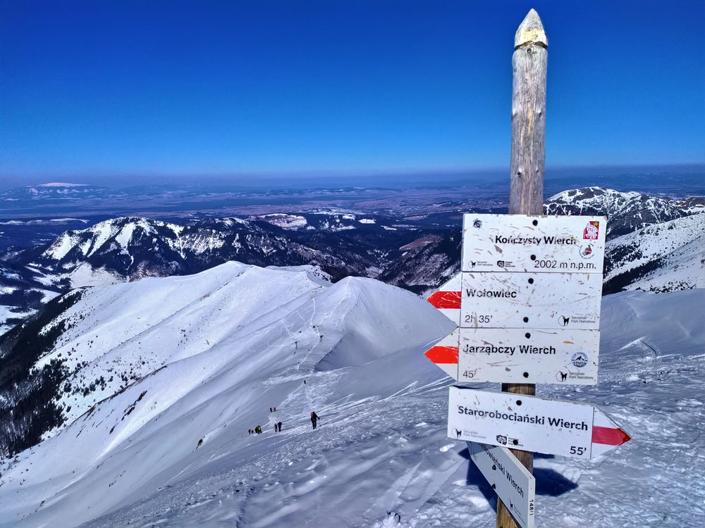 Z vrcholu pak následuje sestup a krátký výstup na Končistou (2002 m), kde se po zelené odbočuje po hřebeni přes Czubik (1846 m) a Trzydniowiański Wierch (1758 m) do Doliny Chocholowske. Za posledním zmíněným vrchem se schází do lesa a člověk se musí s těžkým srdcem rozloučit s panoramatickými výhledy na zasněžené velikány Západních Tater. Sestup údolím zpět do Kirů, jak to tak bývá, se zdá být nekonečný – dlouhých 8 kilometrů. Pokud se vše povede jak má, tak půjdete tento úsek s úsměvem!