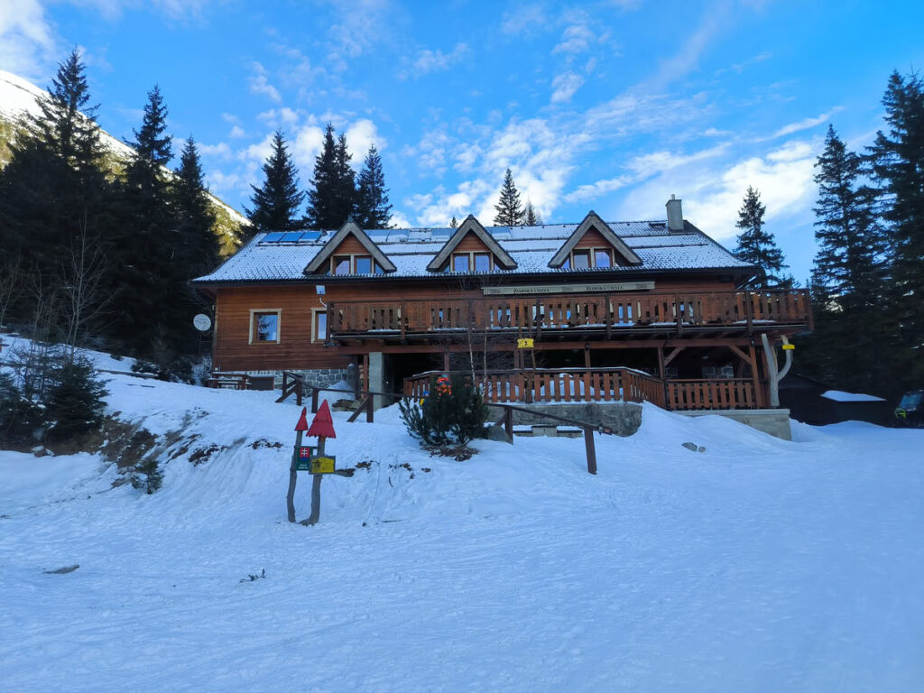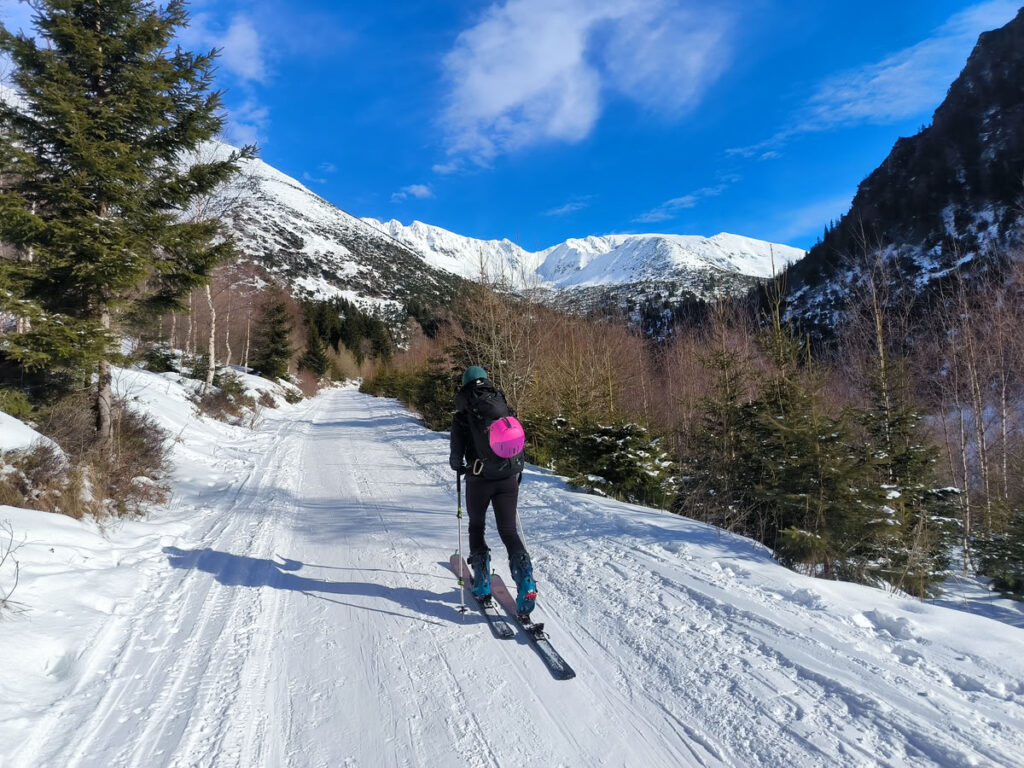 S Verčou jsme na parkovišti v ústí Žiarské doliny zjistili, že proti nám nestálo jen převýšení přes 1200 metrů, ale také slabší sněhová pokrývka. První dva kilometry po lehce zasněžené cestě s kameny by dřel pásy jen ten, kdo je má na rozdávání. Zbylé tři kilometry už to bylo v pohodě nejen pro výstup, ale také pro následný sjezd. U chaty jsme si pod bundu připnuli lavinové vyhledávače a zamířili jsme vstříc zasněžené kotlině. Stoupání od chaty až téměř k rozcestí Pod Homôlkou probíhá po chodníku přes les s kosodřevinou. Tento úsek je z hlediska sjezdu problematický, pokud je méně sněhu. Kosodřevina nebyla vůbec pod sněhem a často trčely velké kameny. A dnem údolí podél potoku nám lyžař znalý místních poměrů nedoporučoval se vracet. "Bývávalo tady až dva metry sněhu." odpověděl s nostalgií.