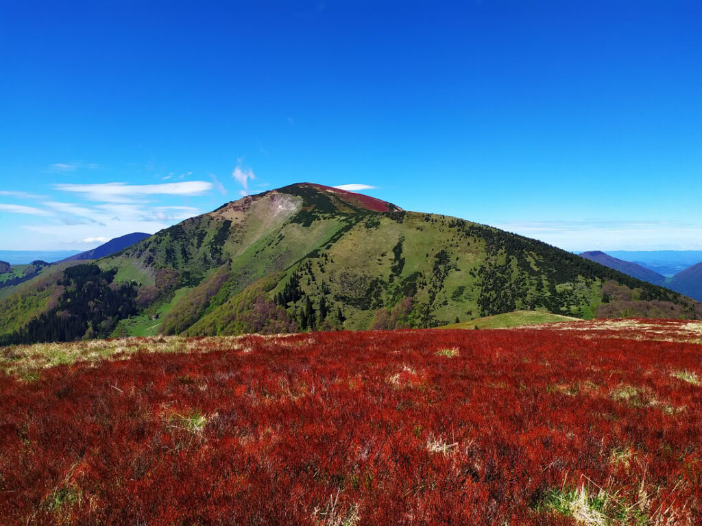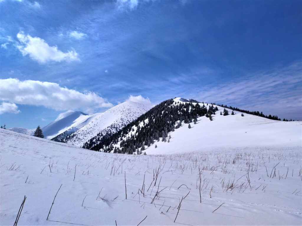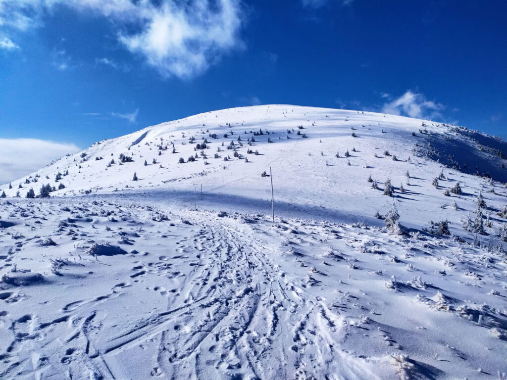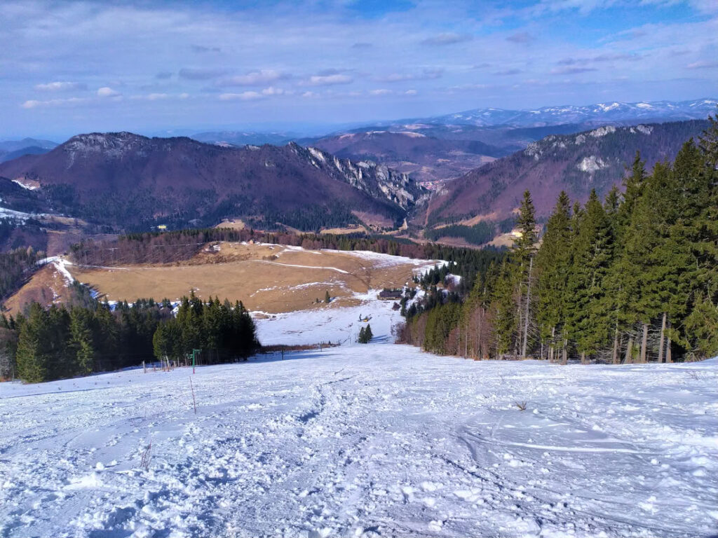 Následoval prudký sestup do Stohového sedla (1230 m) a následně krátká hřebenovka na Poludňový grúň (1446 m). Z něj se otevírá krásný pohled na Stoh, který z této strany má nezaměnitelnou siluetu díky svému kotli. Z Poludňového grúně jsme pak sestupovali nekonečným a prudkým svahem po bývalé sjezdovce k Chatě na Grúni. Od ni pak zbývá sestoupit zpět k parkovišti po modré. Krásný výstup na Stoh měřil necelých 12 kilometrů s převýšením 1200 metrů! Ani mi to nepřipadlo, ale je pravda, že se začíná přibližně ve výšce 650 metrů.