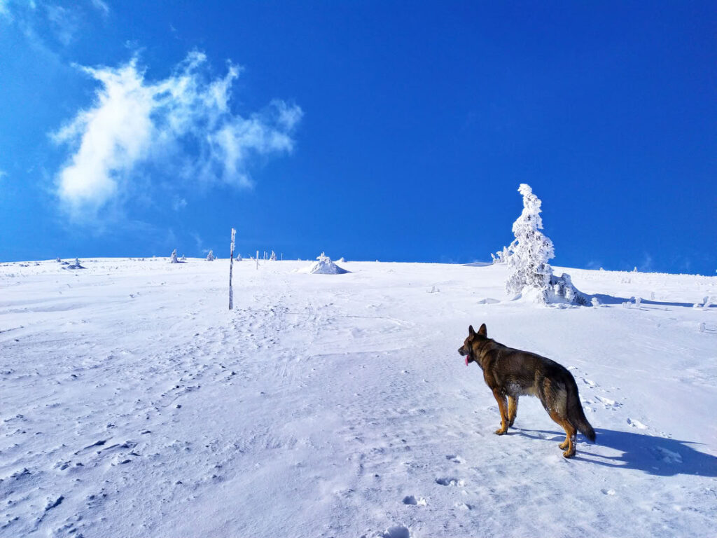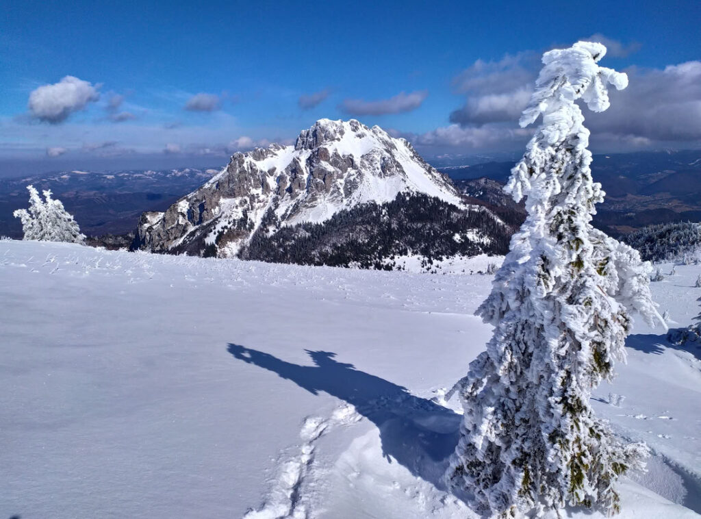 Já jsem se se svým parťákem Jerrym vydal na Stoh v pozdní zimě. Sníh byl všude ztvrdlý a tak se dalo všude bezpečně chodit jako po asfaltu. Zvolil jsem výstup z parkoviště ze Štefanové. Nejdřív nás čekal pochod po zelené do sedla Medziholie a následně po červené hřebenovce na vrchol. To nejzajímavější nás čekalo po opuštění pásma lesa. Stoh je z této strany opravdu impozantní rozlehlá plošina. Z vrcholu se pak za odměnu otevírá kruhový výhled, kterému kraluje Veľký Rozsutec (1609 m) a hlavní hřeben Malé Fatry.