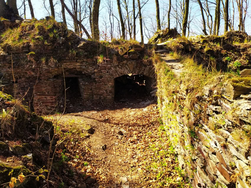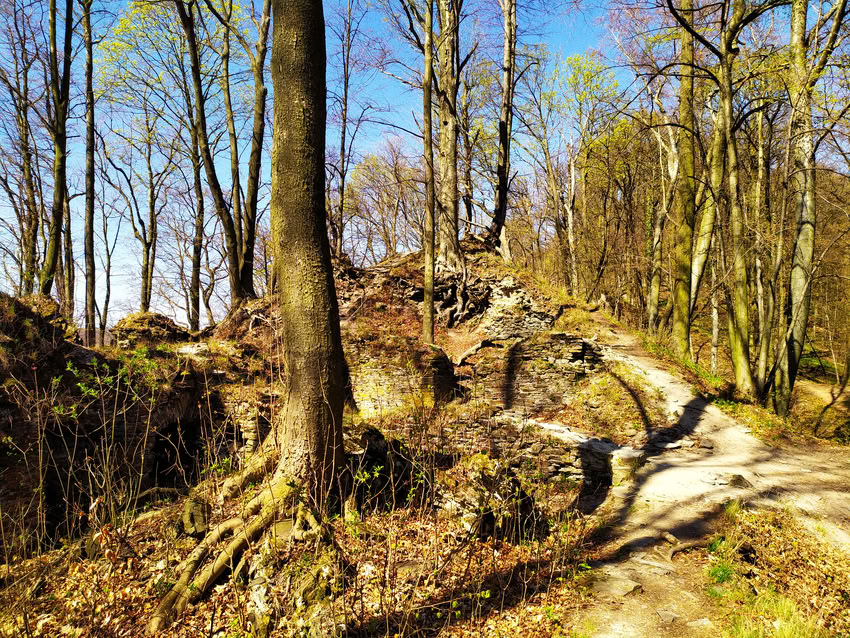 Drahotuše na kole – ke zřícenině lze vcelku snadno dojet na kole po lesní cestě, která přichází k můstku z východu (modrá přichází k můstku z jihu). Na lesní cestu se napojíme hned za poslední zahradou na východním konci Podhoří.
