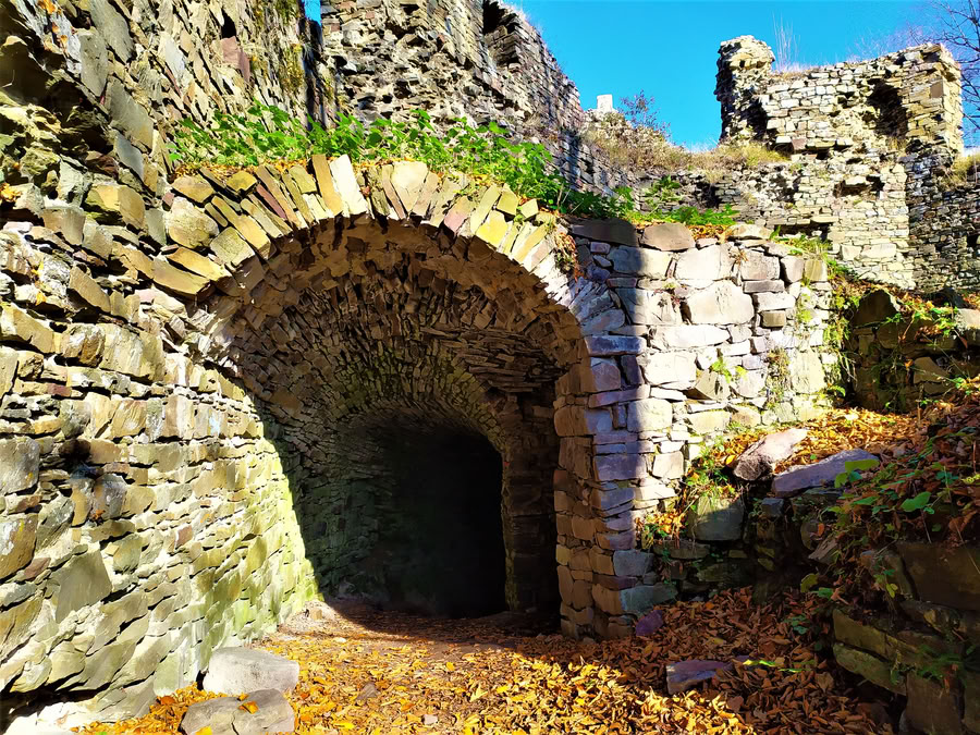 Jednoho dne musel Vítek vytáhnout do boje s krutým nepřítelem. Činil tak velmi nerad, protože zanechal svou mladou paní na hradě s malou posádkou. Této situace využil ješitný Tunkel a svou porážku v turnaji se rozhodl krvavě pomstít. Se svými zbrojnoši vnikl do hradu a pobil nepočetnou posádku. Paní purkrabího Vítka nabízela drahé koně, víno i drahý poklad, ale Tunkel vše odmítl. Přiskočil k ní a svým mečem ženě probodl srdce. Zkrvavenou krásku posléze hodil ze skály do Moravice. Když se Vítek vrátil z bitvy, shledal otevřené brány, pobité vojáky, vydrancované sýpky a od přeživšího starce si vyslechl smutnou zprávu o smrti své ženy. Vítek se spojil se svými blízkými rytíři a vytáhl na Tunkela. Ti srovnali Tunkelův hrad se zemí tak, že se dodnes neví, kde stál. Tunkelovi se však podařilo uprchnout a od té doby o něm nikdo neslyšel. Šlechetná paní purkrabího Vítka se stala ochránkyní hradu a prochází se kolem půlnoci po hradbách v bílých šatech se zřetelnou rudou skvrnou.